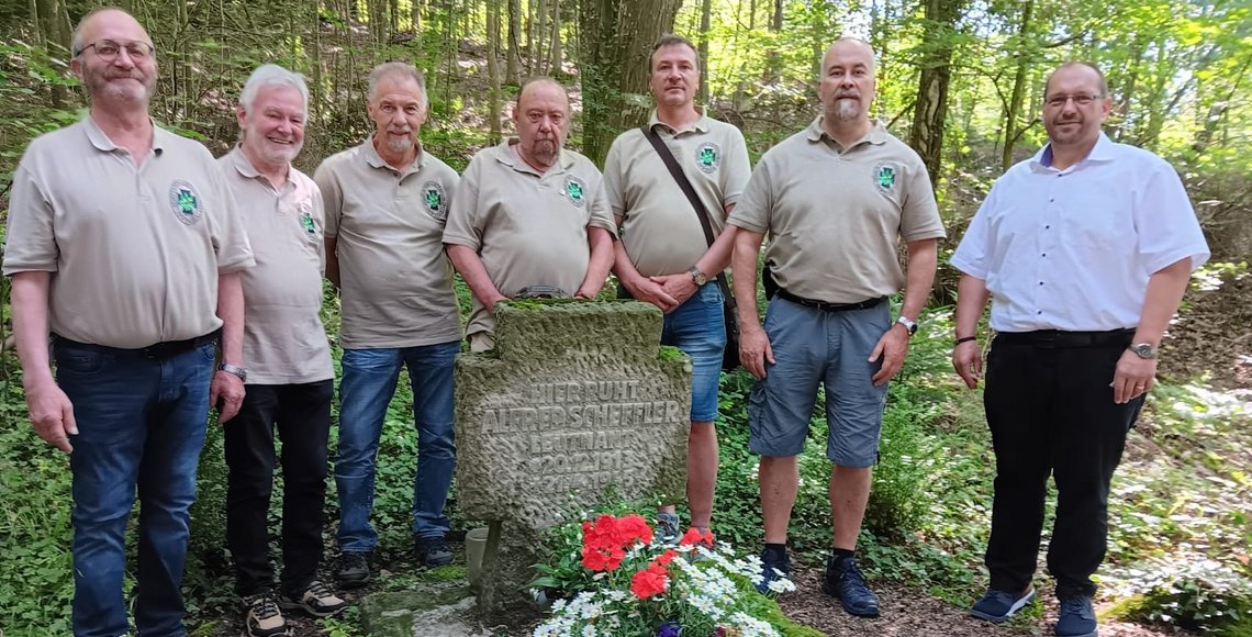Nach der im Frühjahr erfolgten Reparaturaktion der Reservistenkameradschaft Dewangen (wir berichteten) war nun wieder eine Abordnung der Dewanger Reservisten zusammen mit Bürgermeister Markus Bock zu einer kleinen Gedenkveranstaltung beim Soldatengrab.